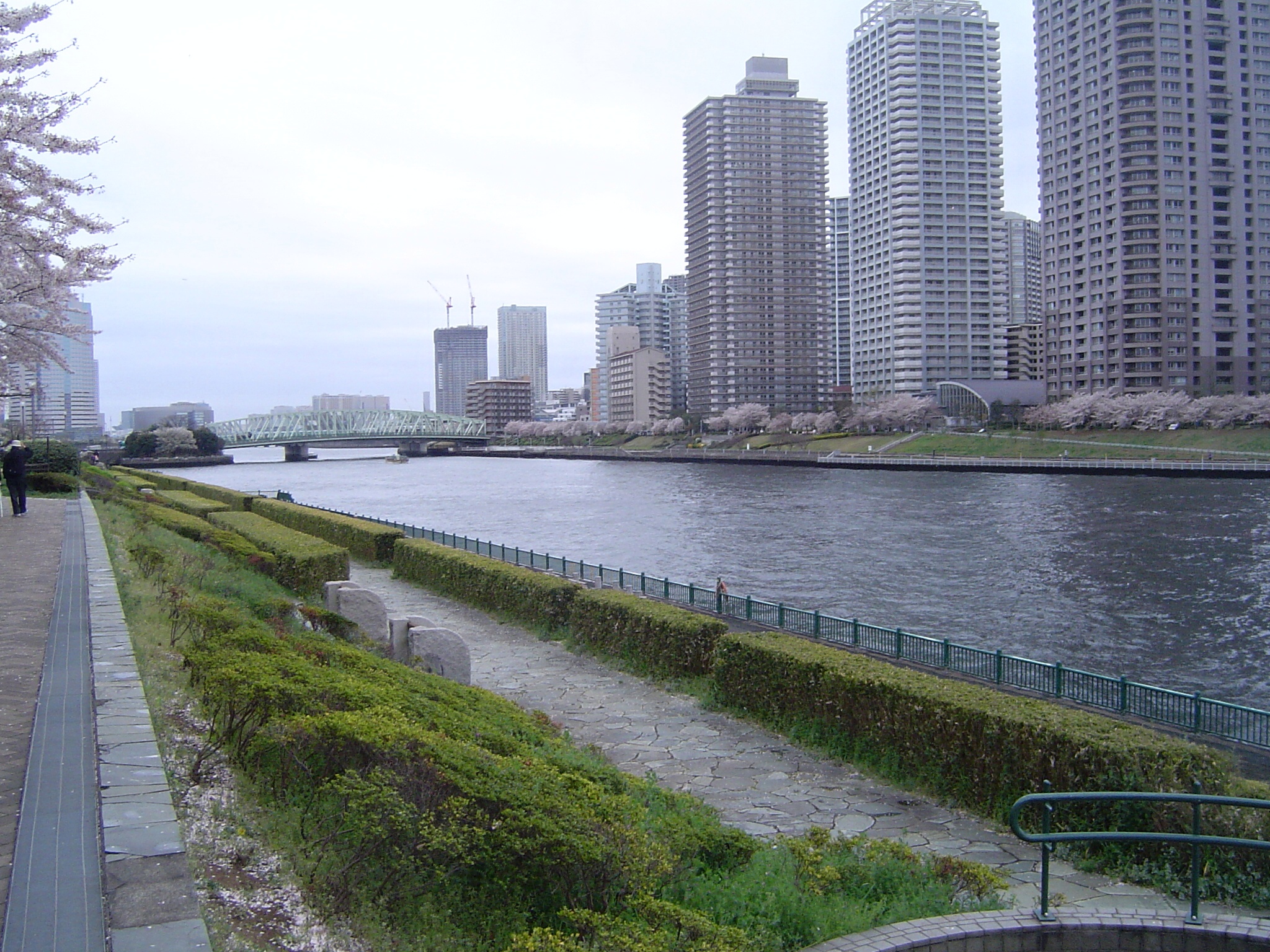 深川から、佃島の桜もなかなか見ごたえがありました。この時期は観光船なども出ていて、大変にぎわっていました。